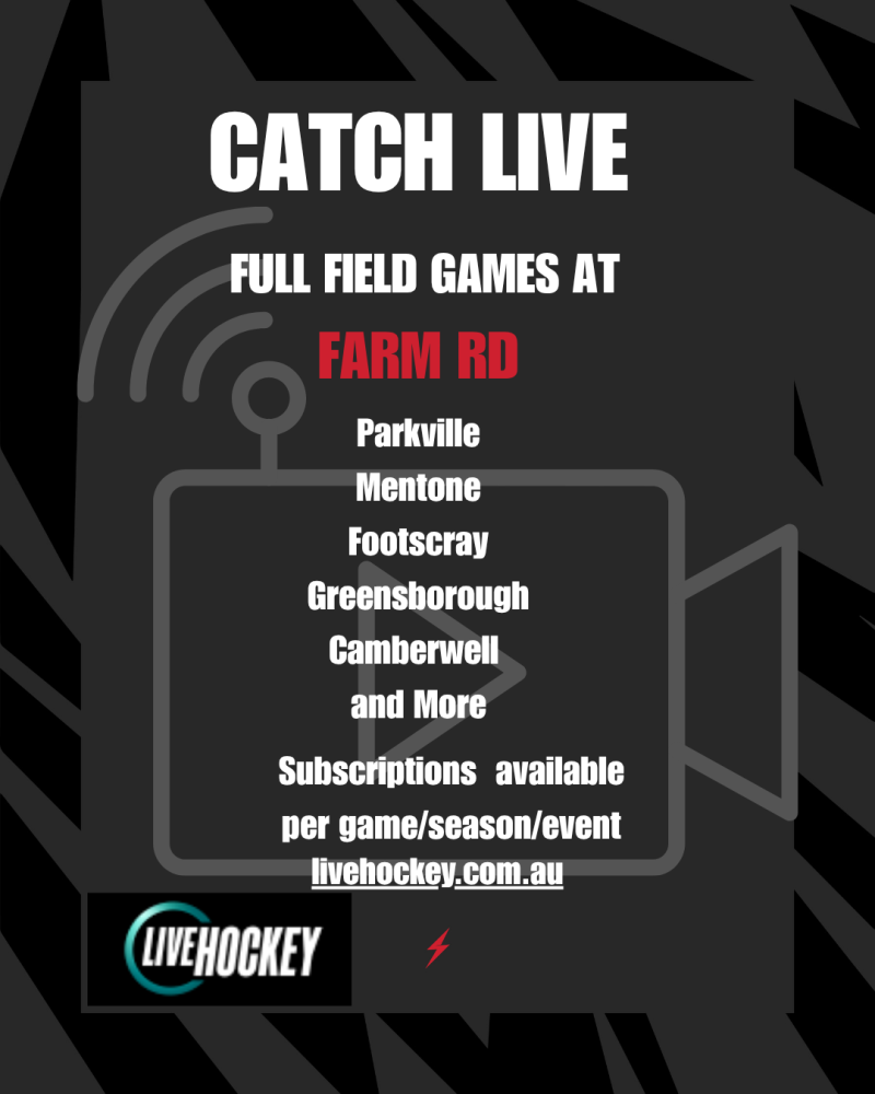 All Hockey Victoria scheduled full field games at Farm Rd will be live streamed.  Live streaming occurs at other Hockey Victoria Venues.  You can subscribe to watch live streaming at livehockey.com.au A great chance to see what is happening on the field if you can’t make it to the game, or rewatch the game in all its glory.  We have upgraded the streaming quality at Farm Rd from 2025 and should see some improvement in the image quality. The cutting off of games before they have finished should also have been removed. With these new changes our midweek games will also be live streamed. All Victorian live streaming games can be seen here