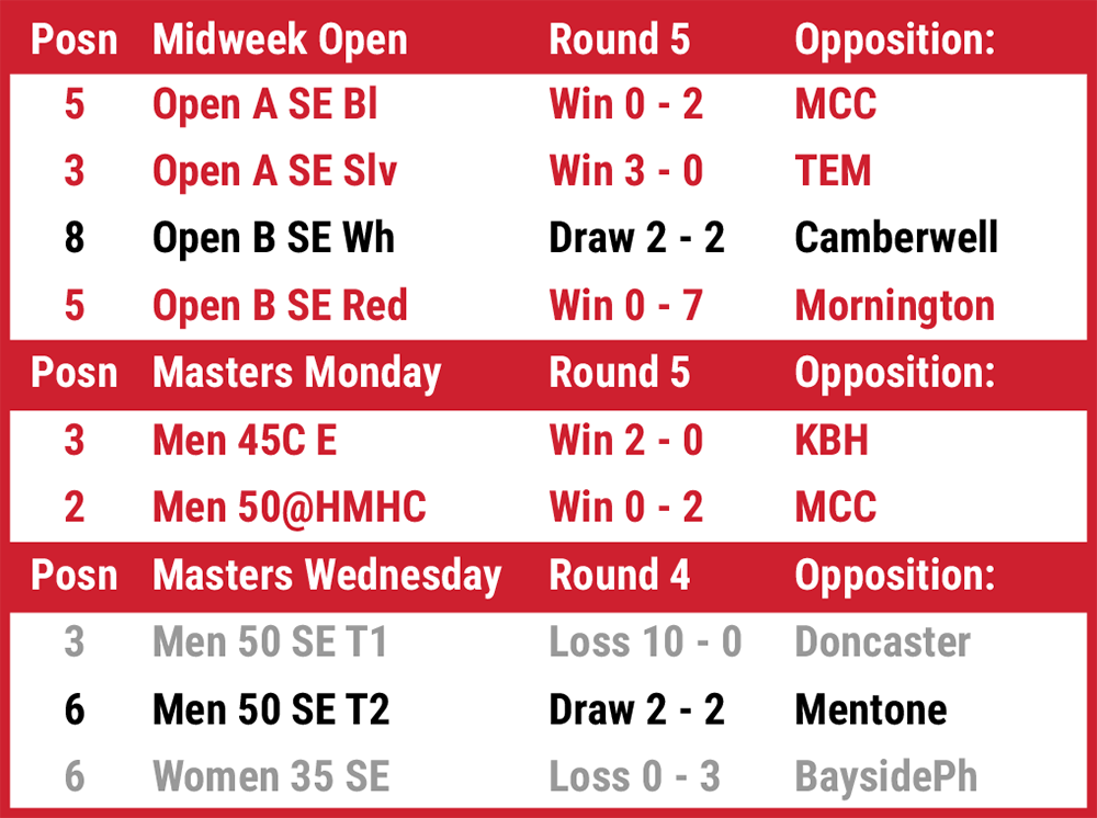 SUHC Masters-Midweek Fixtures