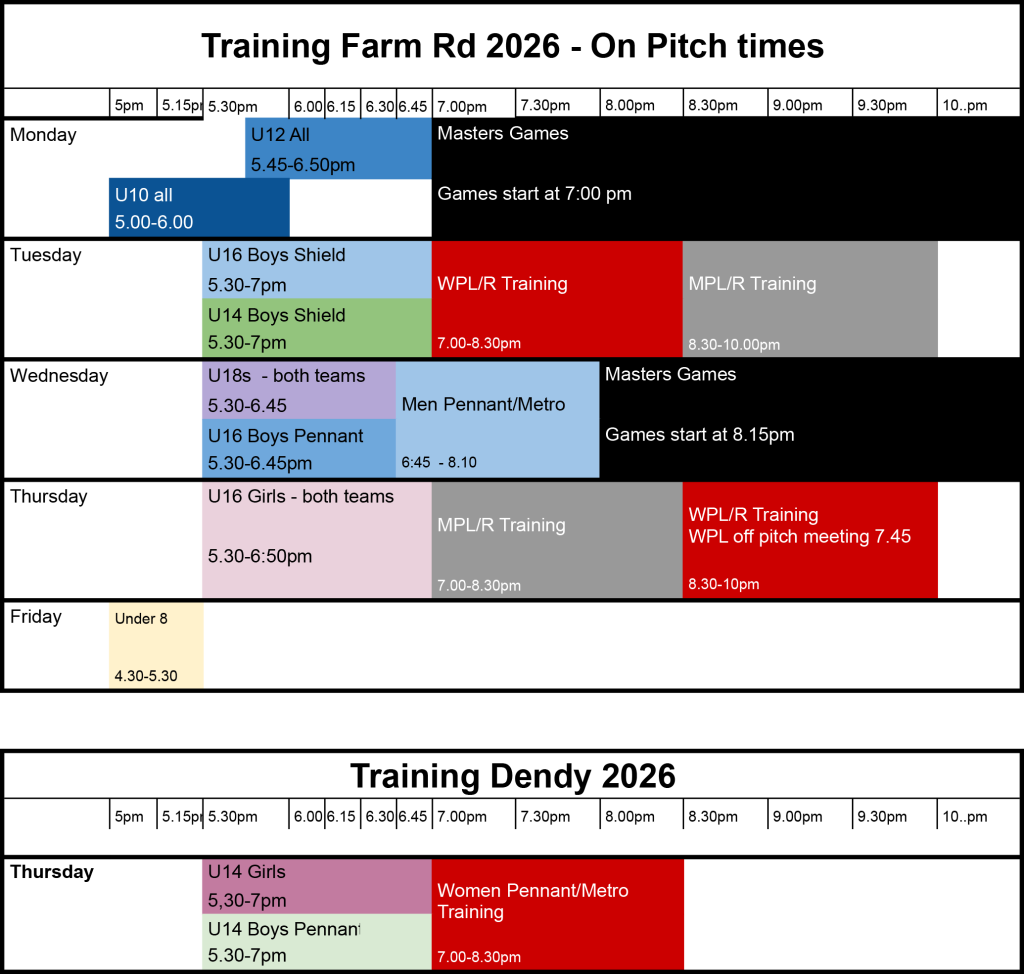 Women’s Pennant/Metro training pre-season will run on Monday nights at Farm Rd starting February 2nd – 7pm. Change to 7.30pm when junior training commences.